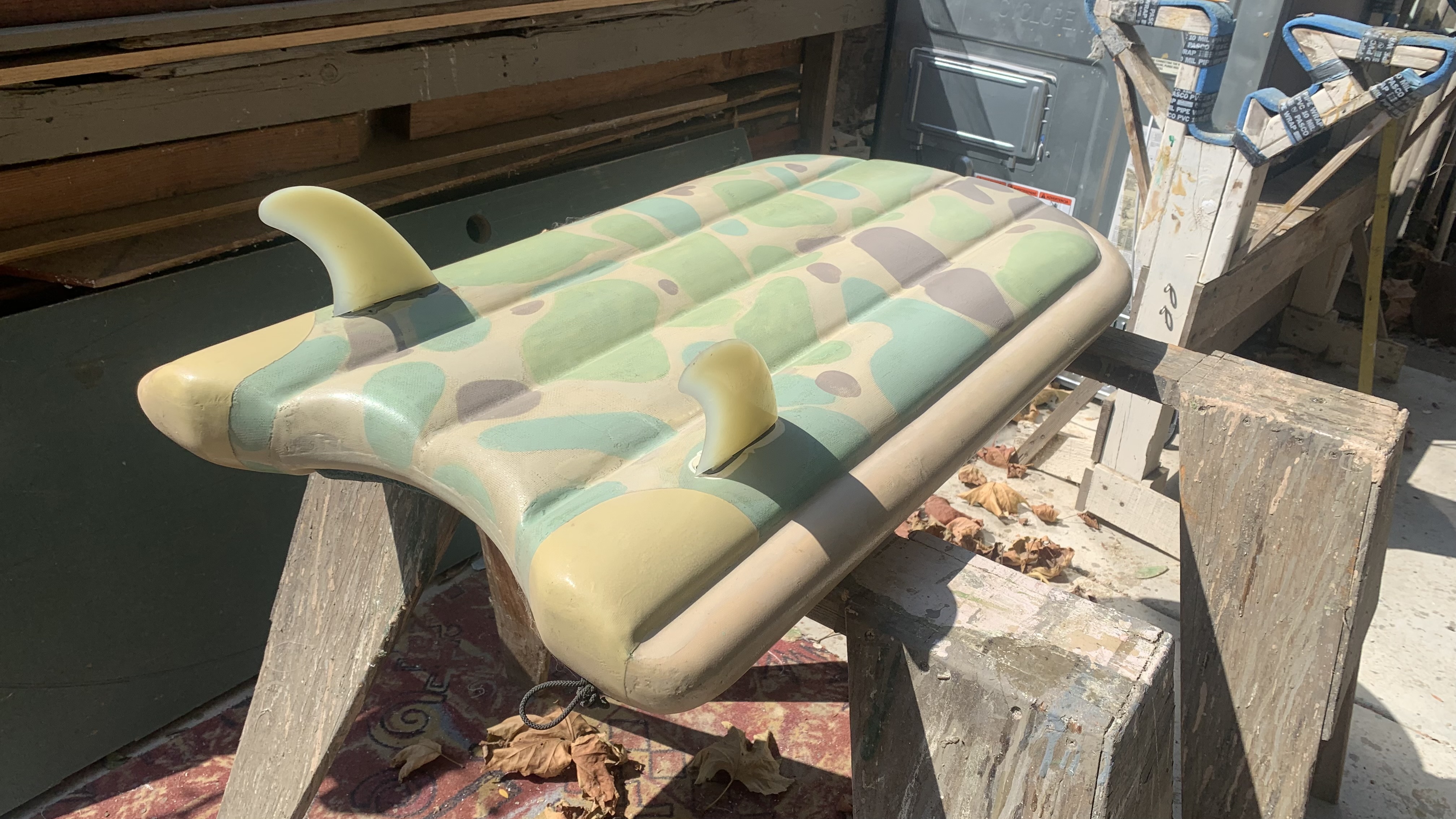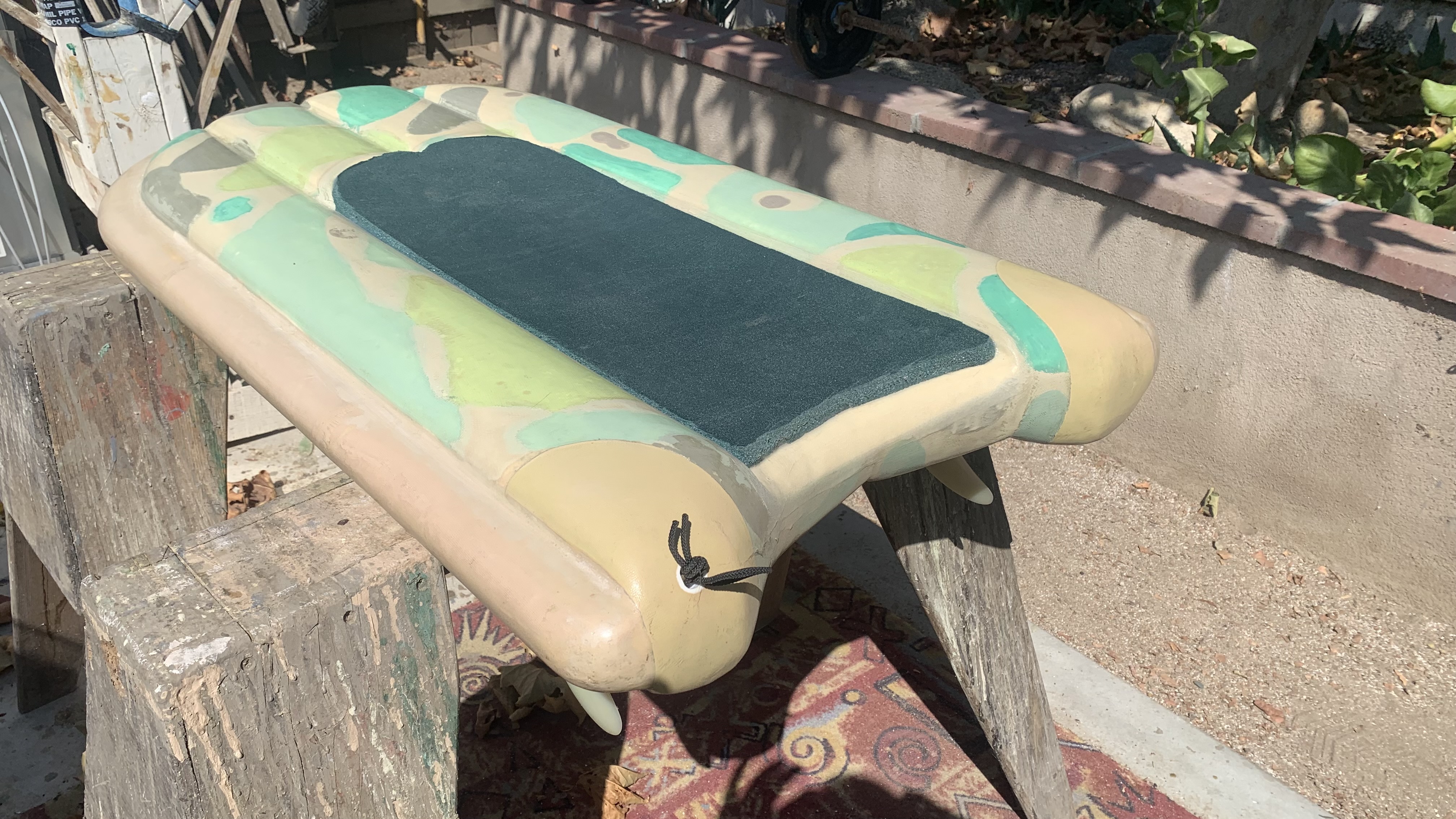 People have been surfing air mats for several decades. Air is more buoyant than foam. Air mats are similar in shape and dimensions to Huck’s creation. Air mats have roughly the same thickness as Huck’s new surfcraft.