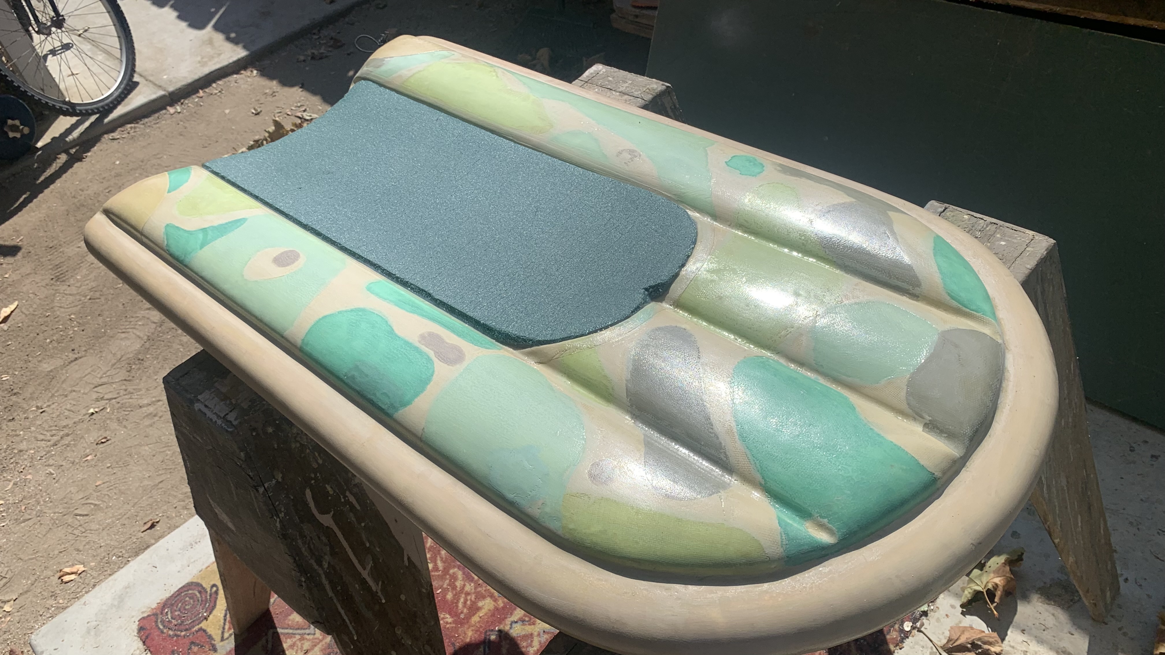 Not really much to say right now, I cut / shaped the concave into the deck as shown. I glassed it with a single layer of 4 oz cloth. But I didn’t fill coat and finish the modification, as a variety of life issues took priority and I had to put this on the backburner for awhile. Hopefully get back to it soon, it doesn’t need much to get it ready for a second trial run.