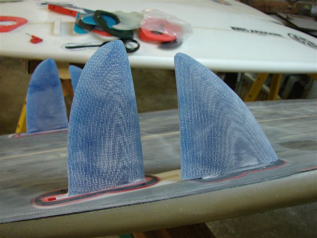 I noticed they come with three FCS plugs and tabs per fin. That large, heavily raked fin must apply loads of force to the fin base as well as adding weight.