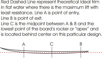 The rocker area you are focusing on is an Apex of sorts depending on the boards “trim” in the water. But I like to describe it rather as a fulcrum point. And maybe you would agree. The boards width, thickness and rocker apex, all converge in this area (to varying degrees) making this general area of the board into a sort of swivel point around which most surfing activity stems from. It isn’t just the rocker alone. The width bulge in the template is also a fulcrum point of equal importance as the board is rolled up on a rail. And the thickness or volume of foam in the rail also creates a fulcrum point. There is, for lack of a better description, a convergence of force here that the surfer manipulates as he sees fit. It isn’t just lift, nor gravity, it is a fairly ambiguous convergence of all forces that for the most part has never been talked about or dissected, and for many (if not most) ever been recognized. But it is there all the same. And all areas of the board have to be designed properly to feed into this area to satisfy the needs of the surfer and the waves he rides.