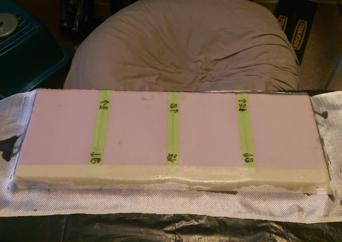 * Notice the greater amount of foam on the (numbered) edge opposite the side used to peel up the glass patch. The peel edge was taped to avoid this effect. The opposing/numbered edge without tape -- with resin drip over the foam edge -- appeared to have much greater mechanical bonding/leverage (bottle-opener effect?).