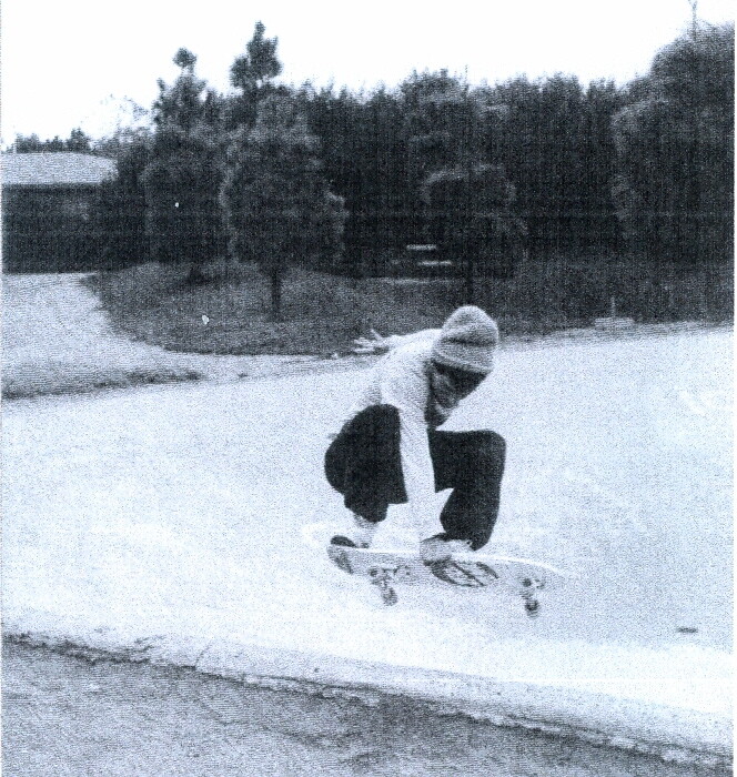 my first 2 or 3 boards were made in woodshop out of oak planks - then I got the idea to take some birch plywood and laminate it together using a crude jig to create some kicktail. Thiose ended up snapping pretty quick, but I didn’t give up I built a better jig at home, used some boat epoxy my dad had, and laminated two pieces of 1/4 inch marine ply. I used my dad’s 3/4 ton Chevy as the press! It worked great, I shaped a 10 X 30 pool board that lasted almost a year, I was 12 I think. Here’s me a year or two later skating the local spot - anyone from Santa Cruz recognize it?