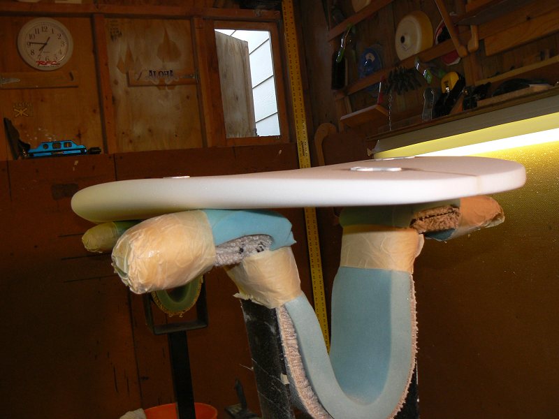 The way I do it: If it’s a deep concave, like a bonzer type concave, I’ll rough it out with the surform. Then I’ll go to the narrower padded block (I have a wide one and a skinny one) and on the inside of the concave, the side against the stringer, I’ll hold the block parallel to the stringer, but sweep it back or forward at about a 45 degree angle toward or away from the deepest part of the concave. Then on the outside of the concave, the side against the rail, I’ll hold the block parallel to the rail and do the same thing… sweep at a 45. I like to finish them with one of those little square sanding pads that 3M makes.
