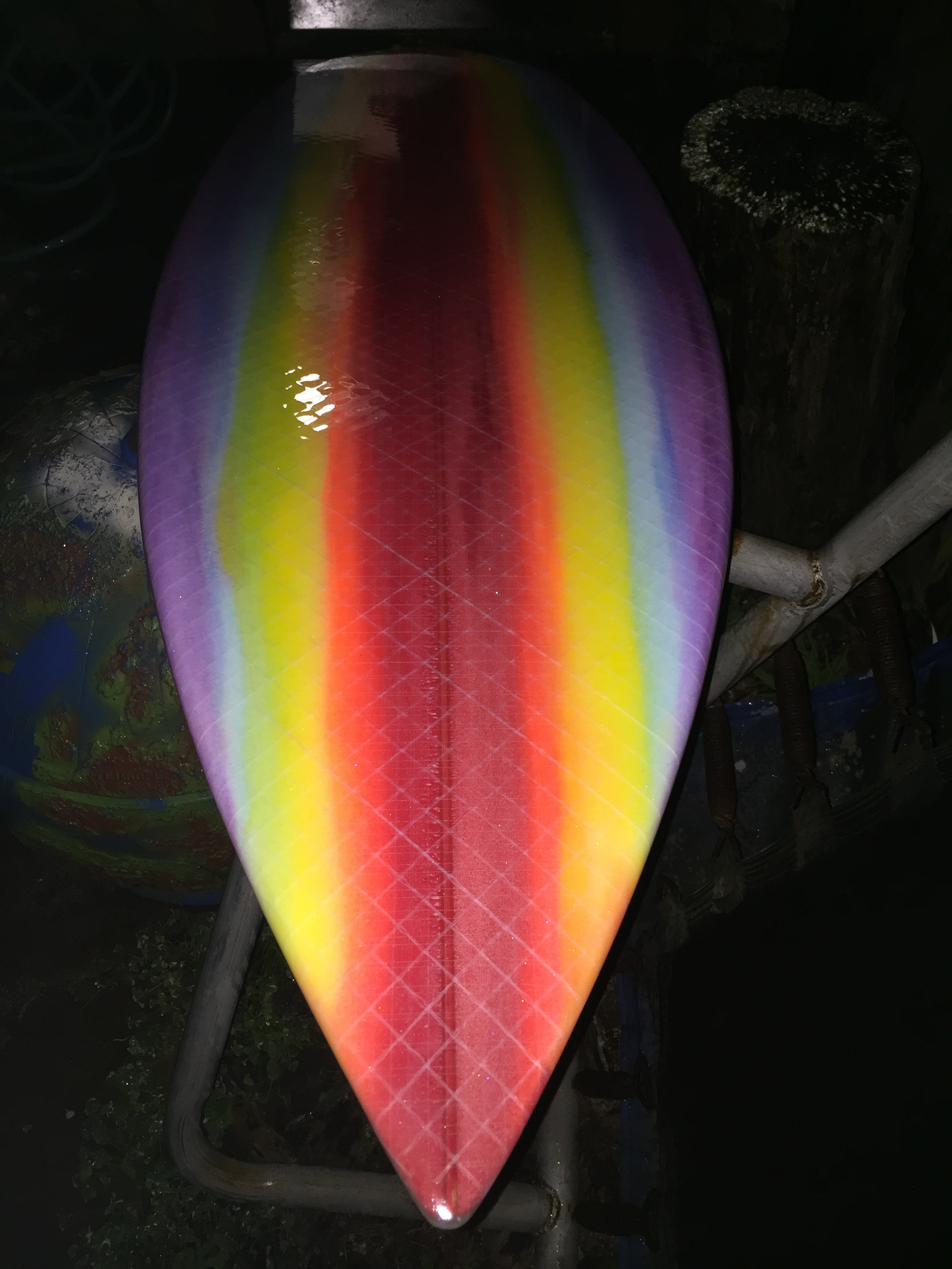 The swell prediction on Wednesday was golden good on Surfline 12@18 seconds so I worked early gave it a quick and dirty sand job and paddled out at OB. It duck dives and floats high enough to make it over the boils in the moat between sand bars. After a good 50 minutes I made it out at Sloat and got 3 waves before dark. Fun! I only missed about one hour of my wife’s Solstice party. ![]()