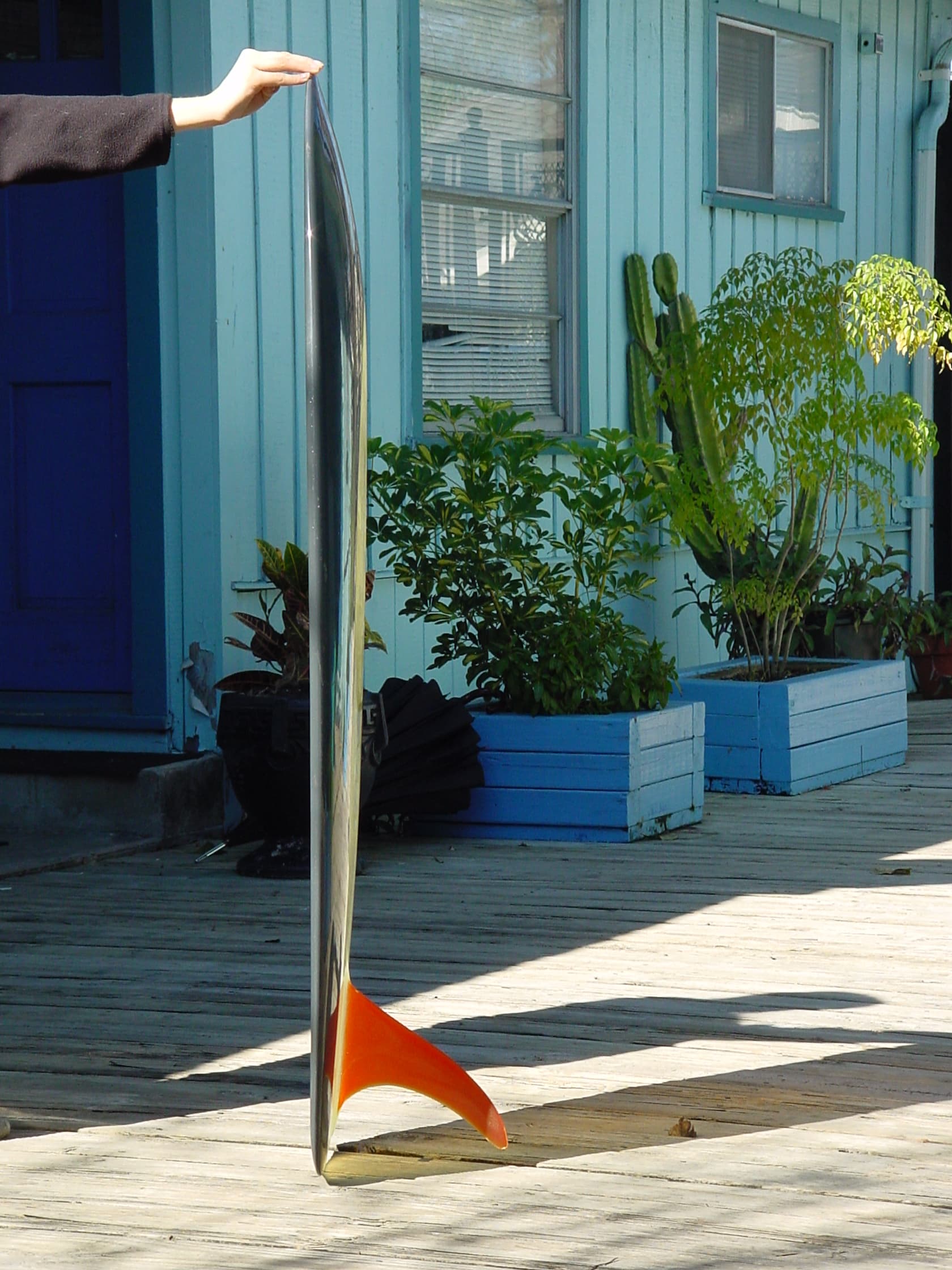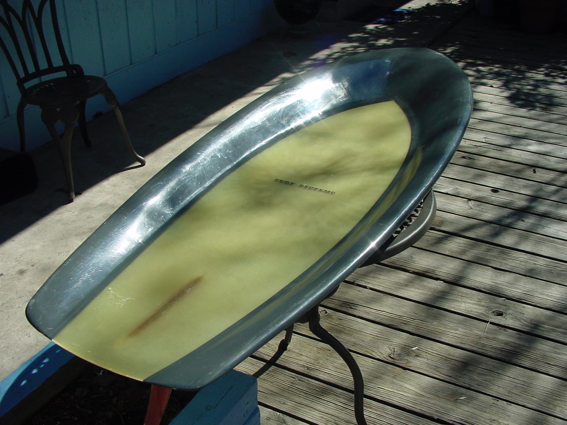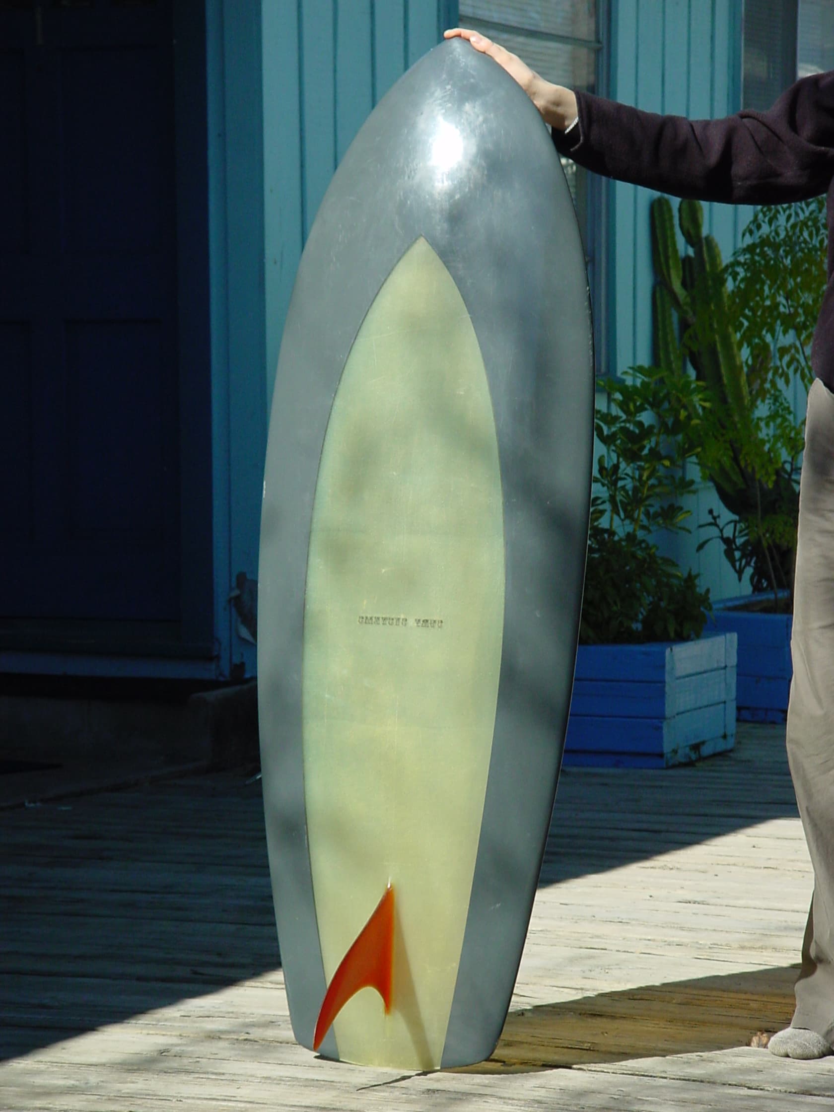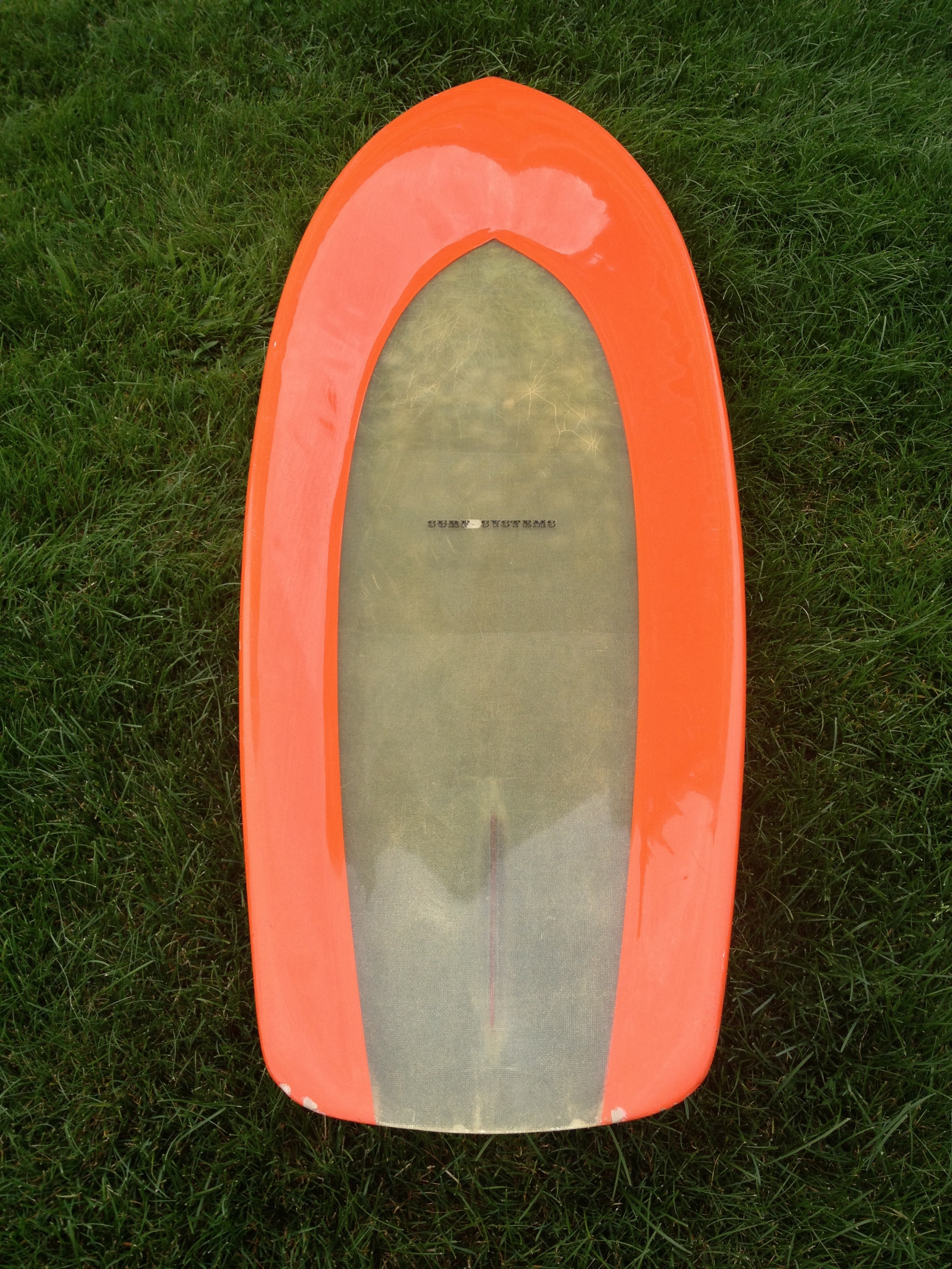 The colors on the original six ‘‘Knee Machines’’ were RED, BLUE, YELLOW, GREEN, BEIGE, and MAUVE. If you compare the tail of your board, with the one in the photo in post #16, you’ll see that yours is wider. The bright orange color on your board was not one of the original colors. The decal is authentic to 1969, and only used for a short period of time. I believe what you have there is a Knee Machine that was bootlegged out of the factory (after hours) by one of the glassers, who is now deceased. I was told he was doing it several years later. He had a key to the factory, so he ‘’ could come in @ 4 am to get a head start on prep.‘’ This is the first proof I’ve seen that verifies that the reported bootlegging actually happened. Sorry to be the bearer of disappointing news. On the bright side, it’s well made, and may perform better than the originals, which needed larger waves to work well.