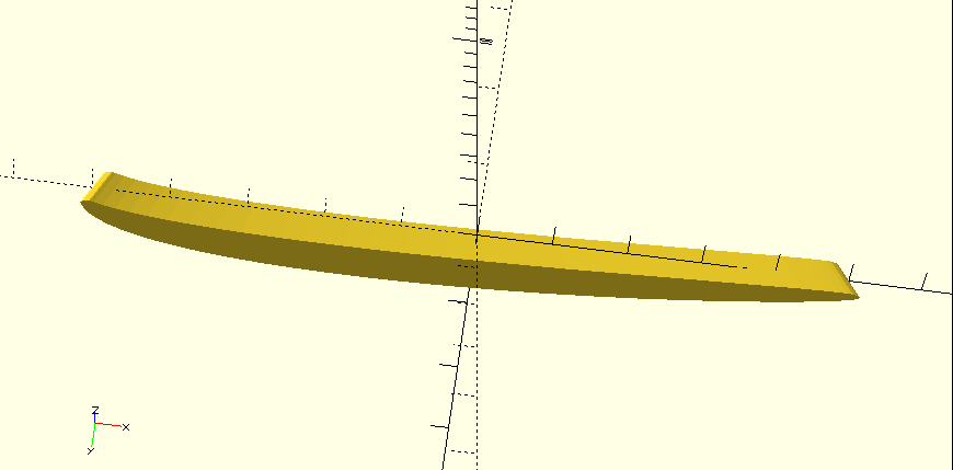 7: Rotate the thin cut from step 5 by 7 degrees around the x-axis. Look how the top & bottom rocker appear! This is just the thin surface rotated!