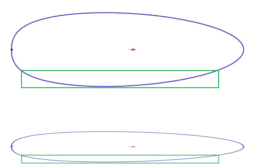 When both you and Malaroo mentioned spinning a planshape from topview towards side view to create gentler curves, something occured to me. You could do this same spin distortion to create a bottom rocker curve from any board’s planshape. However again, this places rocker apex at the wide point of the board.