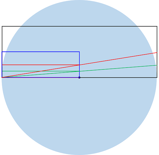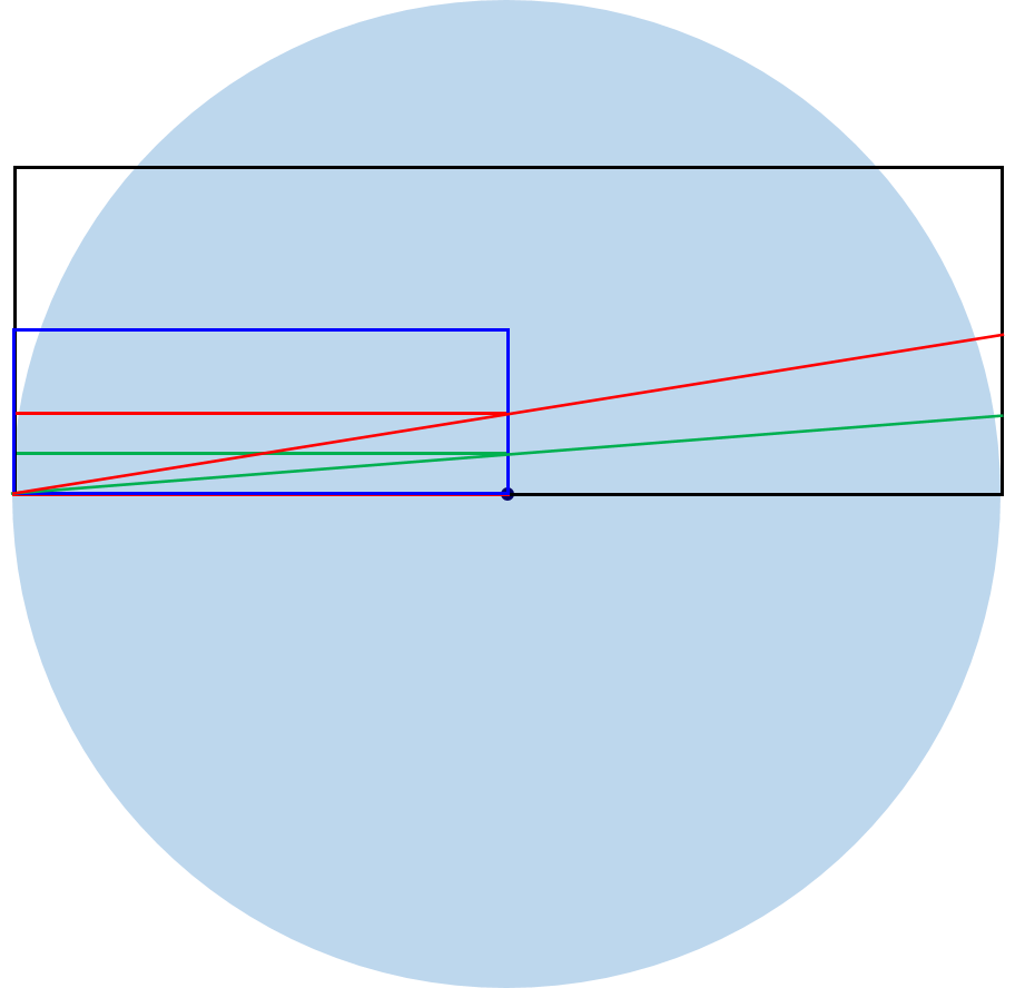 The blue rectangle is half the width and length of the surfboard. Red rectangle is 25% width. And the green rectangle is 12.5% width.