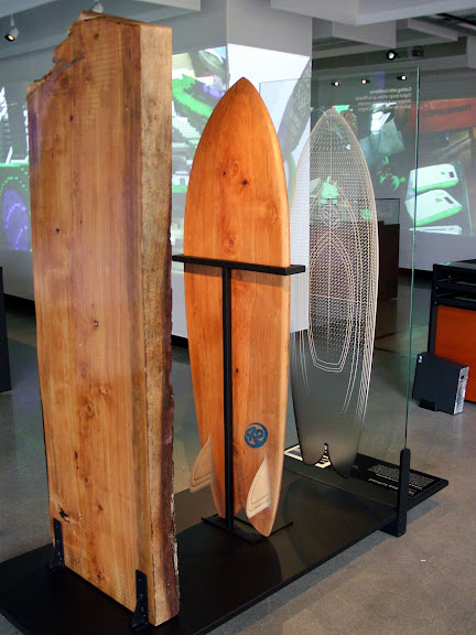 Hello Lcc. Thanks for the kind words. I don’t think this exhibit will make its way back to Oregon any time soon - the gallery bought the whole thing so I don’t really have any control over its future direction. We’ll have an open house at some point here at the shop and we’ll be happy to have you come out and check out a bunch of fun wood boards in a slightly more “natural” setting: an all-wood surf shop instead of a gallery. Glad you like the pictures. We really enjoy using old-school materials in new ways. New for us, at least. I’ve been riding a 6’3 version of that bonzer-inspired 5-fin you were talking about since last winter. In spruce it can handle size and speed very nicely - good for 3/4 of the year up here. All the best, Lars