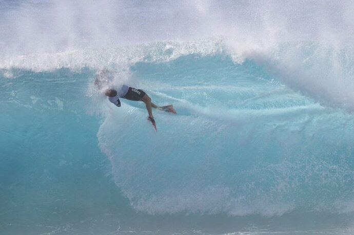 …hence doubling the wave size can be expected to roughly increase the surfer’s speed by roughly 40%.
