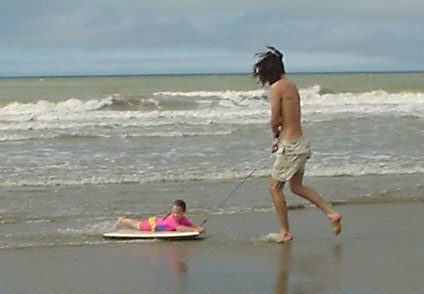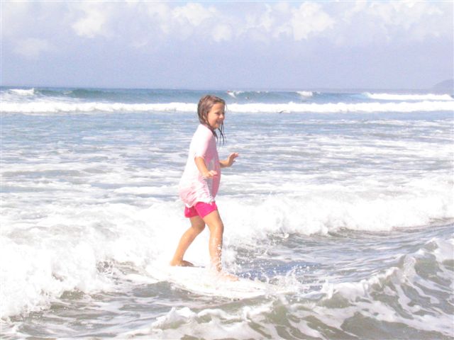 this is my girl about a year ago, she can kinda ride a small ,shallow water foamy, standing up now shes six.hope to make her a fish board this year…