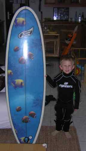 Sorry, Patrice… THREE years old… As a matter of fact, I rode my first wave when I was eleven… And shaped my first board at 14. Do you think Awen will shape his first when he’s 6?