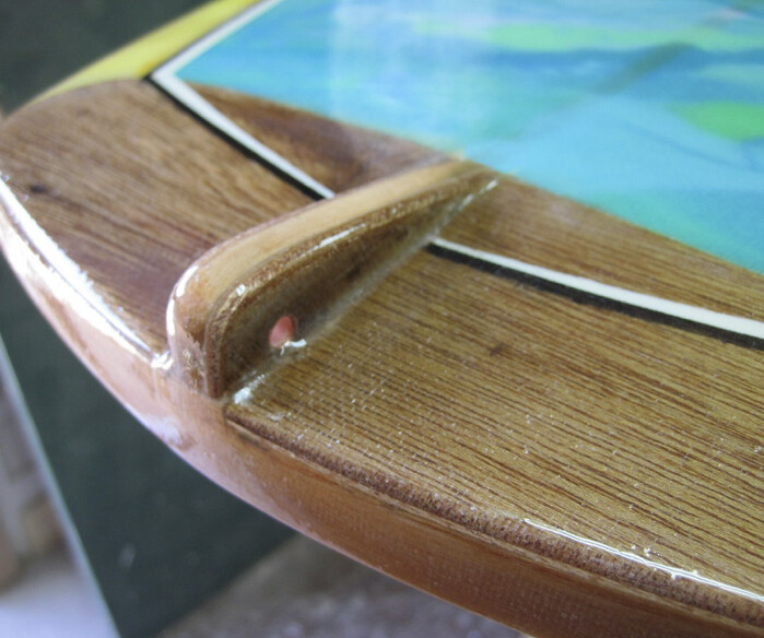 I’ve never had a problem grabbing the fin, whether a center or side fin (I use keels as my front quad setup). As I drop and pull the tail in towards me, the turbulence on the board is lessened, as your body blocks the tail area. If my timing is off or the wave too big, and the board gets pulled away, the “sharp” edges are forced away from me. Hey, it’s a personal thing that has worked for me. There’s nothing like the feeling of popping up behind the wave, getting a quick glance of the white water wrecking everybody inside, sliding back on the board, and catching the next bomb.