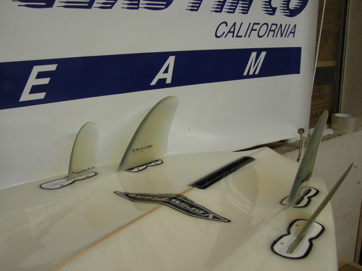 The relationship of how these fins all work together is very important. If the board is hard to turn things are too far back. If the board tracks and locks in to high on the wave face and will not release, too far forward. Even with the six fin ones there sould be no “finney” feel. Fast loose and smooth. One last thing these boards like to SLAMED into turns. No slow down needed.