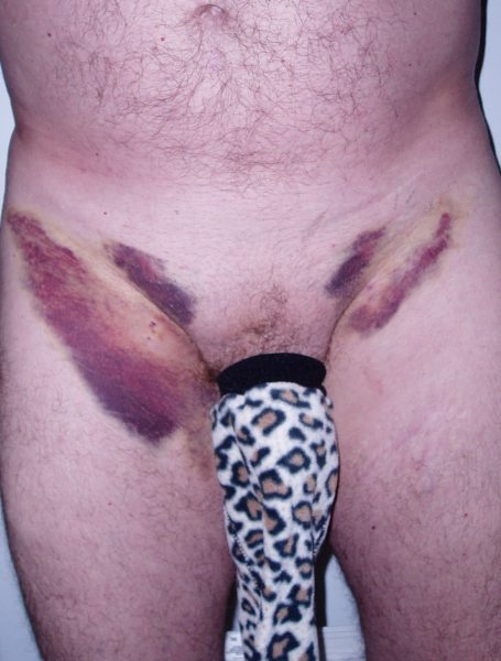 I always have major hematomas after those operations. I think during my first or second operation, I was walking around the hospsital with my wife after they told me I should walk around and the right side opened up some and I had to spend another day or 2 in the hospital with the heavy bags. I had the worst ever hematoma that time.