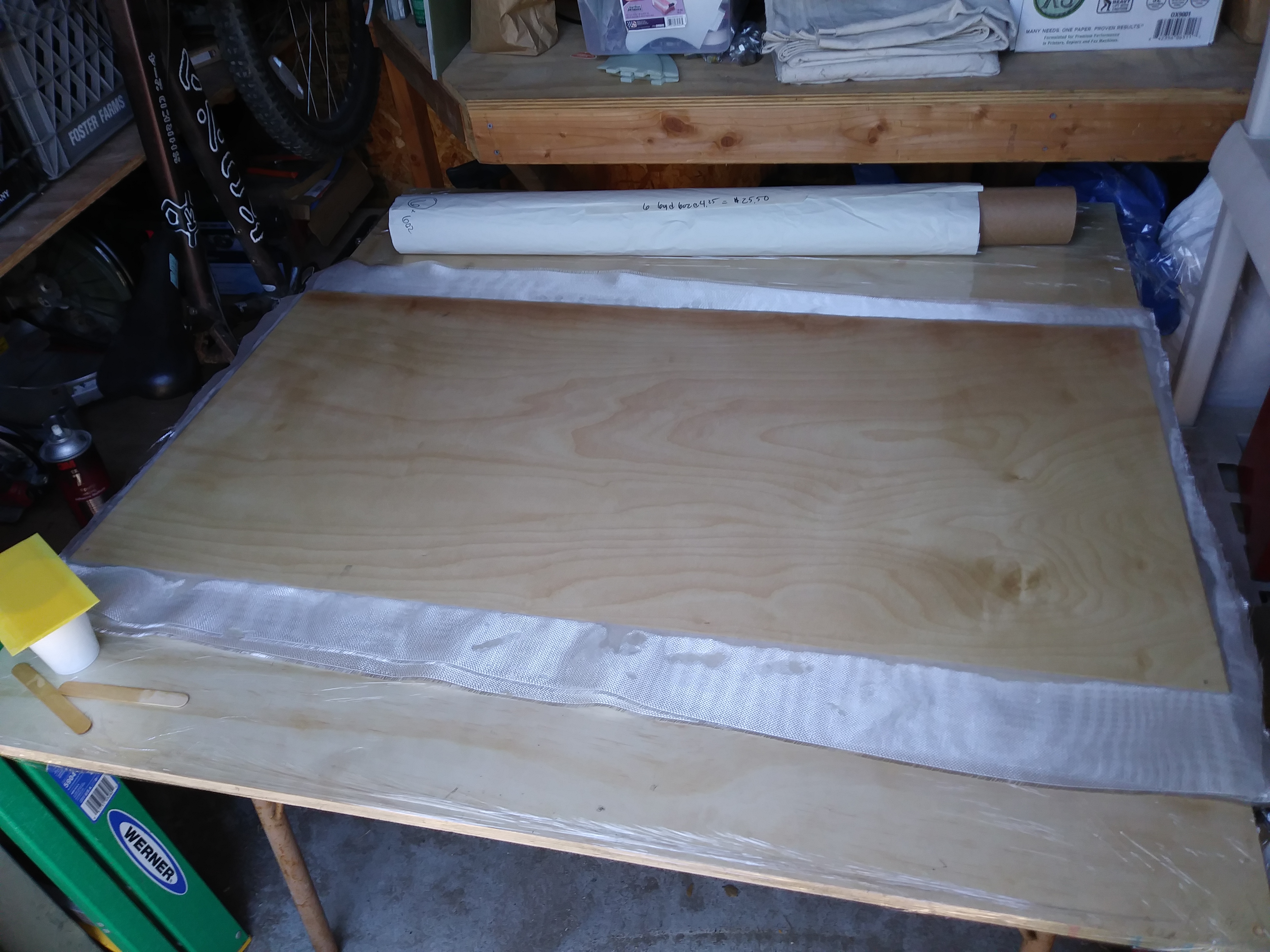 Also lammed 2 layers of 6 oz on this sheet of aircraft ply… Fin fun in the future!
