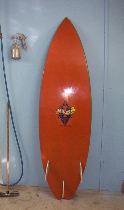 i havent finished it yet , i was supposed to cut it back and polish it today but i ran out of time , i wont be posting for a few days , so i thought i would show a few pics of the nearly finished article , i did a simple colour job to highlight the natural features of the board , ive never been much of an artist in the sense of artwork and colour … but it suits me …
