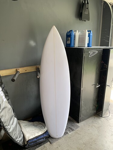 5’10"x19.8"x2.4" thruster. Epoxy over PU. For reference I’m 6’1" and around 190lbs. My usual volume is 32L but now I think I might be better off going down in size.