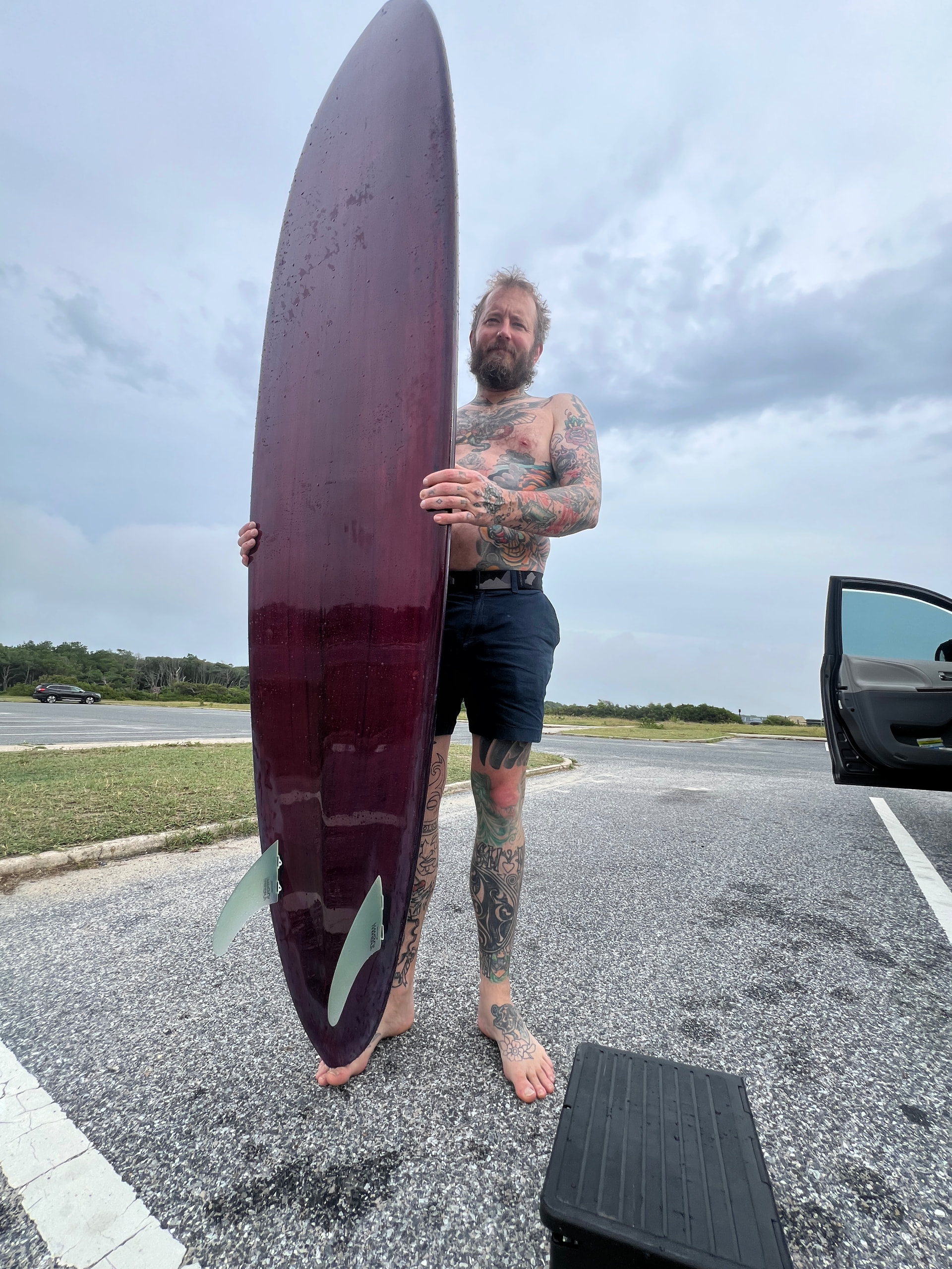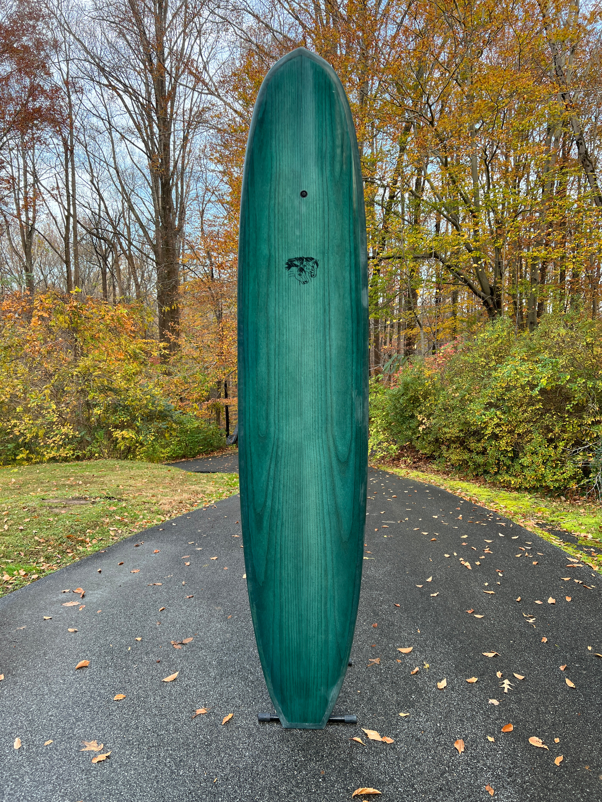 I think the finish was pretty pertinent and didn’t seem to mix into the epoxy when I was glassing. I tried RIT powder in alcohol but it wouldn’t dissolve even after boiling. I definitely used a ton of dye, 4 bottles to one gallon of alcohol, I wanted it pretty dark. Both boards are Paulownia. I’m pretty happy with the RIT and alcohol, dries fast and makes a pretty controllable, rich color.