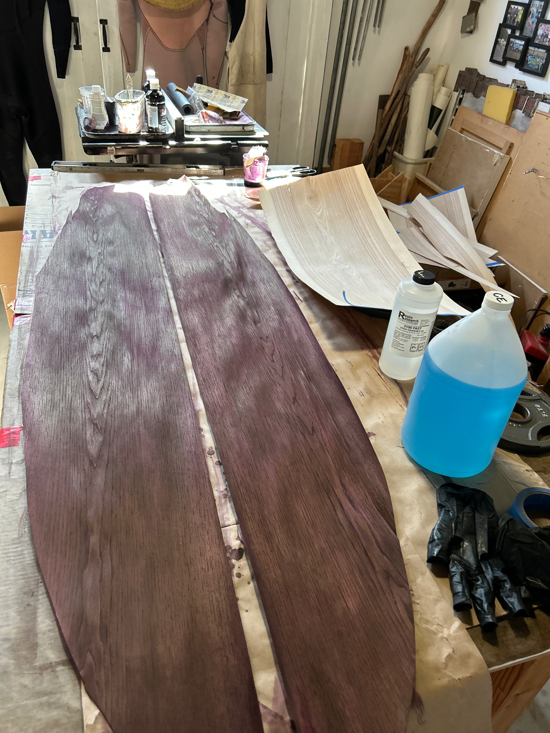 I normally do natural wood when I do my veneer boards. But I have customer who wants a tinted wood. I did one in the past. I think I just used watered down acrylic. 16 years ago so I don’t remember. I believe I did the color after the vacuum bagging. But in recent years I know that when bagging resin pulls through the skins. That wood would not subsequently accept accept tint. I also typically do some tune up sanding after bagging on the skins. That would sand off the tint. So I’m kind of wondering how to approach it this time. Any thoughts would be helpful.