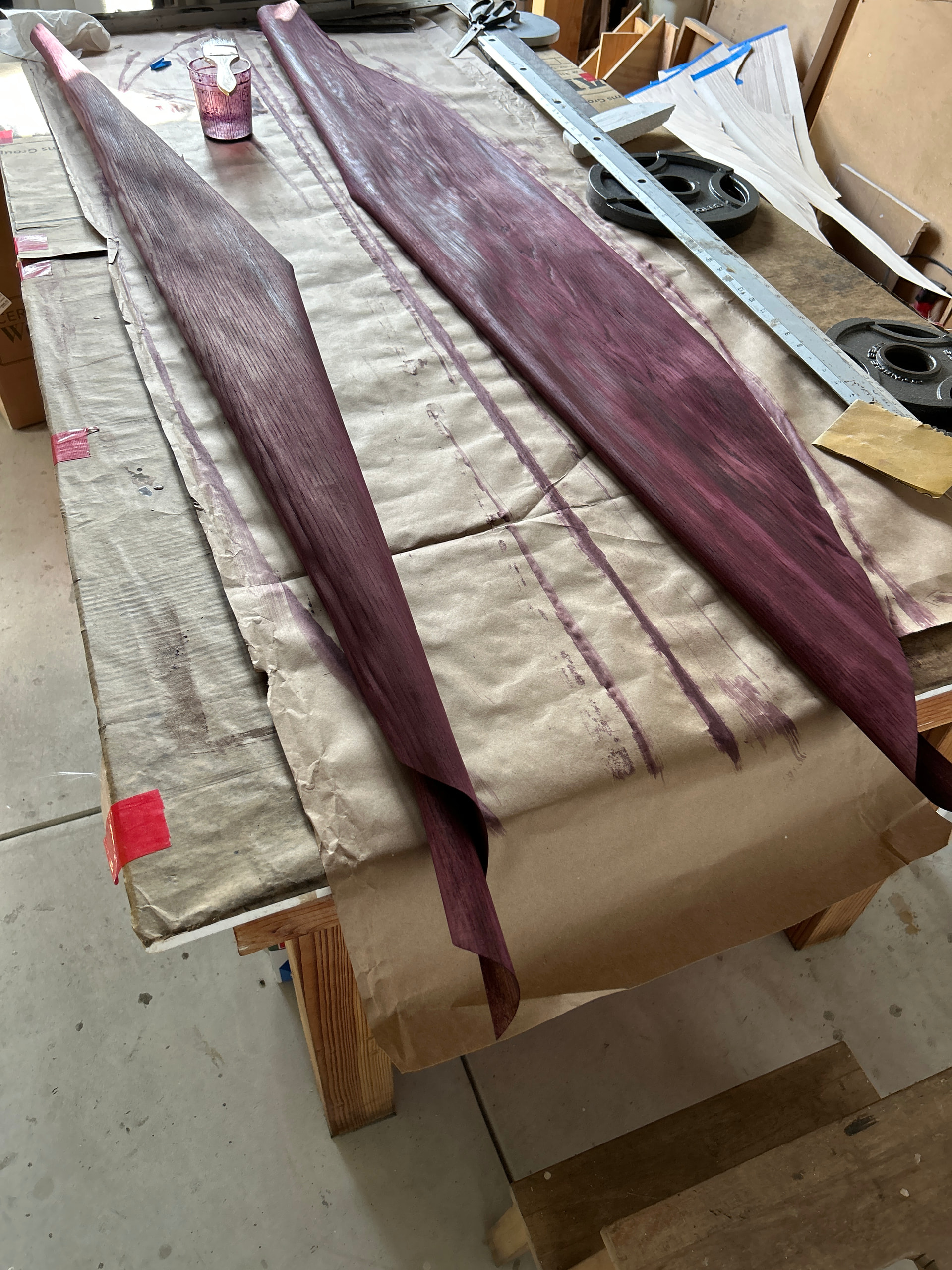 And I mixed the liquid RIT with alcohol in hopes of speeding up dry time and to avoid any moisture in the hollow construction. Sprayed with air spray gun. Not a very deep coloring so I tried to have the boards glass ready, any touchup sanding would’ve really stood out.