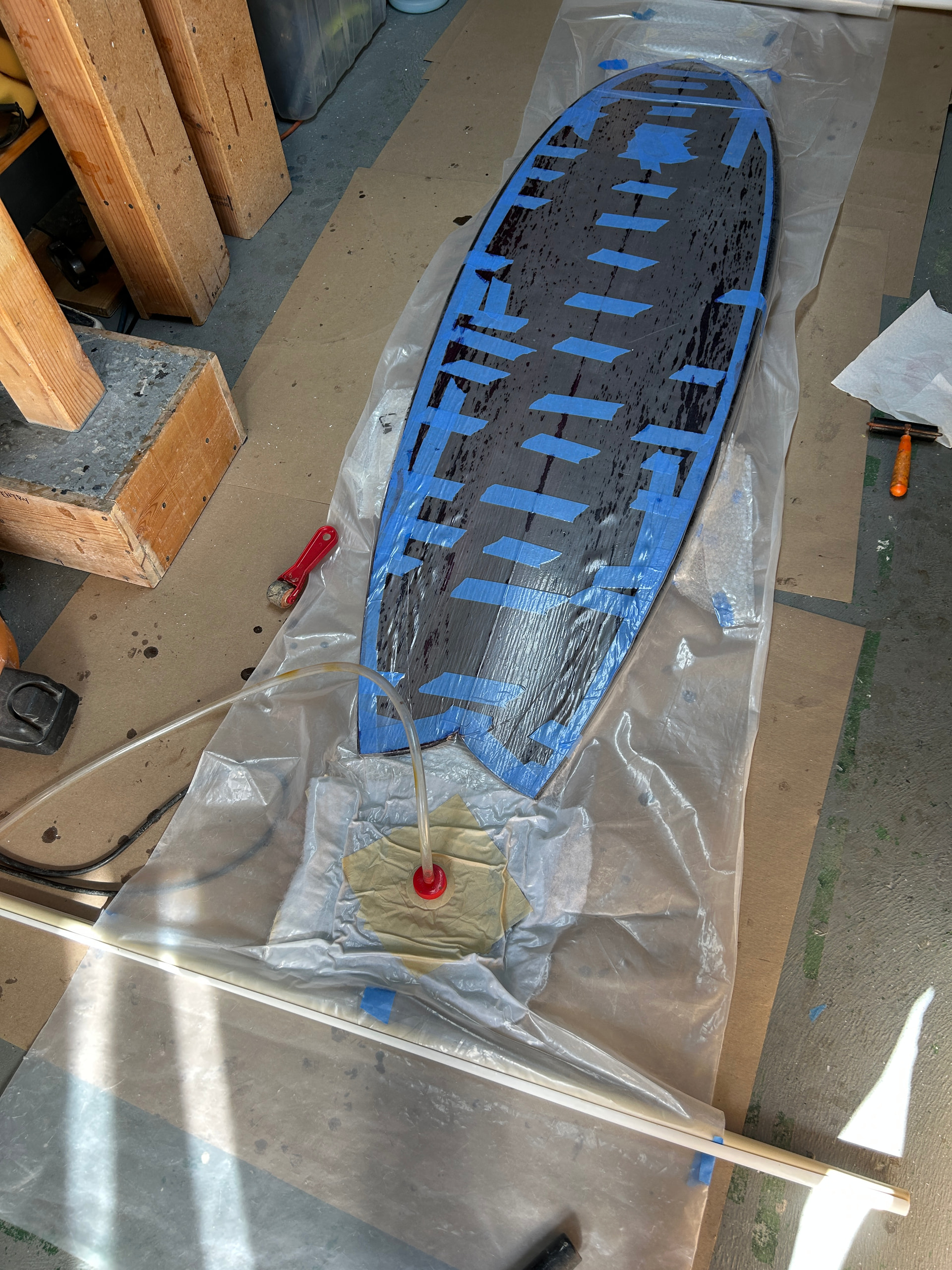 My last ditch will be to try and adhere the bubbles when the epoxy gets to the tacky stage, which with slow hardener will be in about 4-5 hours. I always use slow when bagging to minimize the drama of the bagging process which is much more involved than normal glassing.